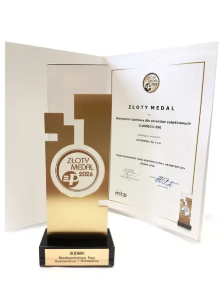 Złoty Medal Międzynarodowych Targów Poznańskich za wentylator dachowy do obiektów zabytkowych CLASSICO-250